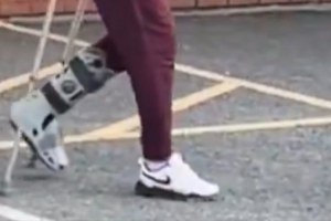 据赛后球迷拍到的画面,哈兰德拄拐离开球场,并且脚上穿着保护靴。